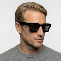 Veridian fra Omoto er en firkantet solbrille i acetat med en tydelig og moderne udstråling. Det solide stel giver en behagelig pasform i hverdagen, mens den rene form skaber et skarpt og stilrent look til både mænd og kvinder.